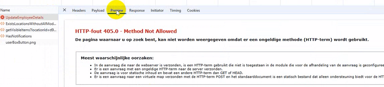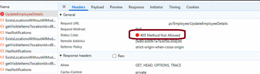 In some cases, the error 405 Method Not Allowed can happen when attempting to save an entry (Crewing working hours, Regions, etc).